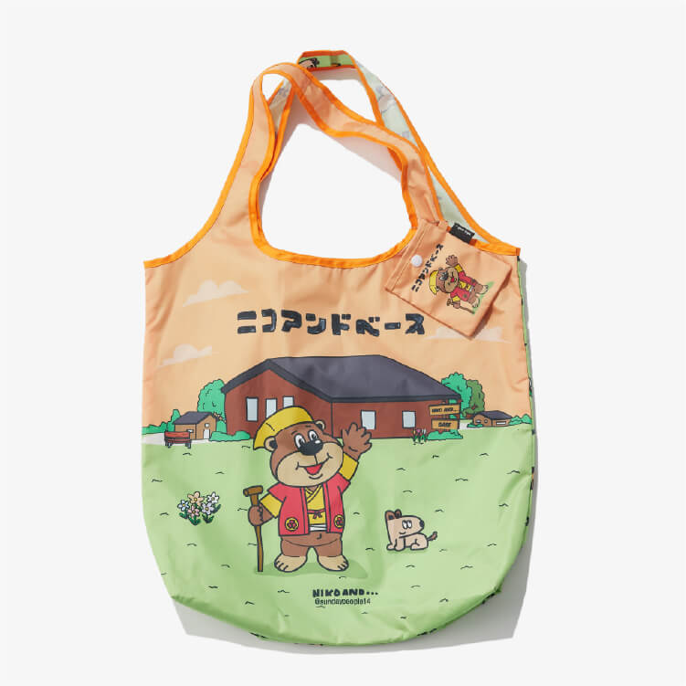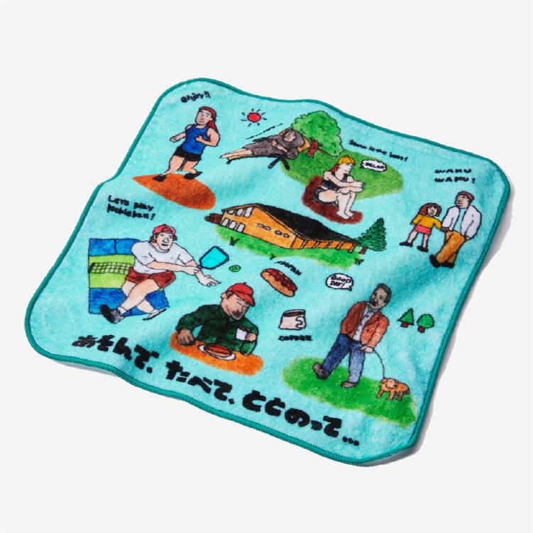 「niko and ... BASE」のキービジュアルのイラストを落とし込んだタオル生地のハンカチ。 ポップで色使いもカラフルで、ユニセックスで使用できるデザインです。