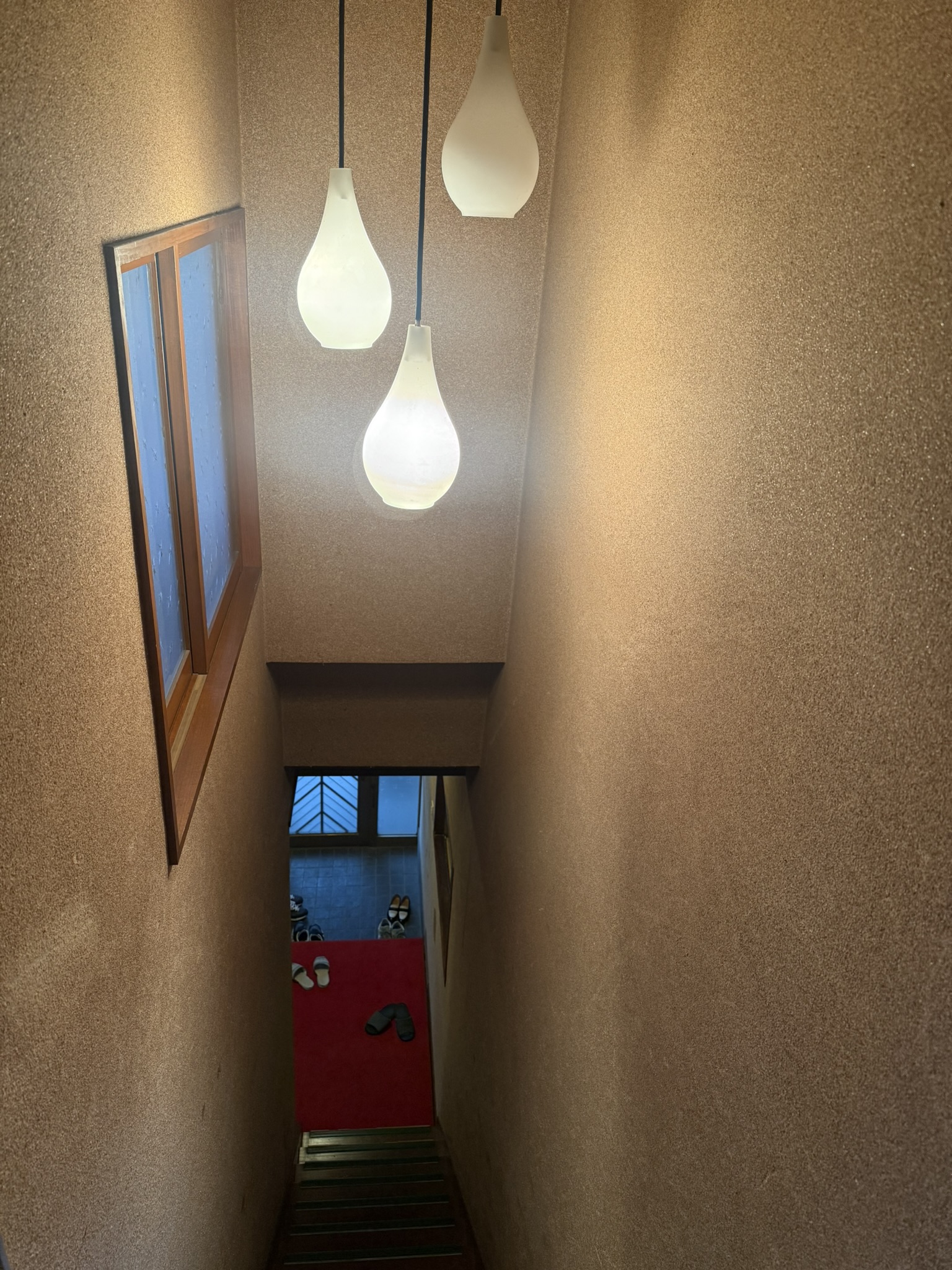 砂壁に急な階段。