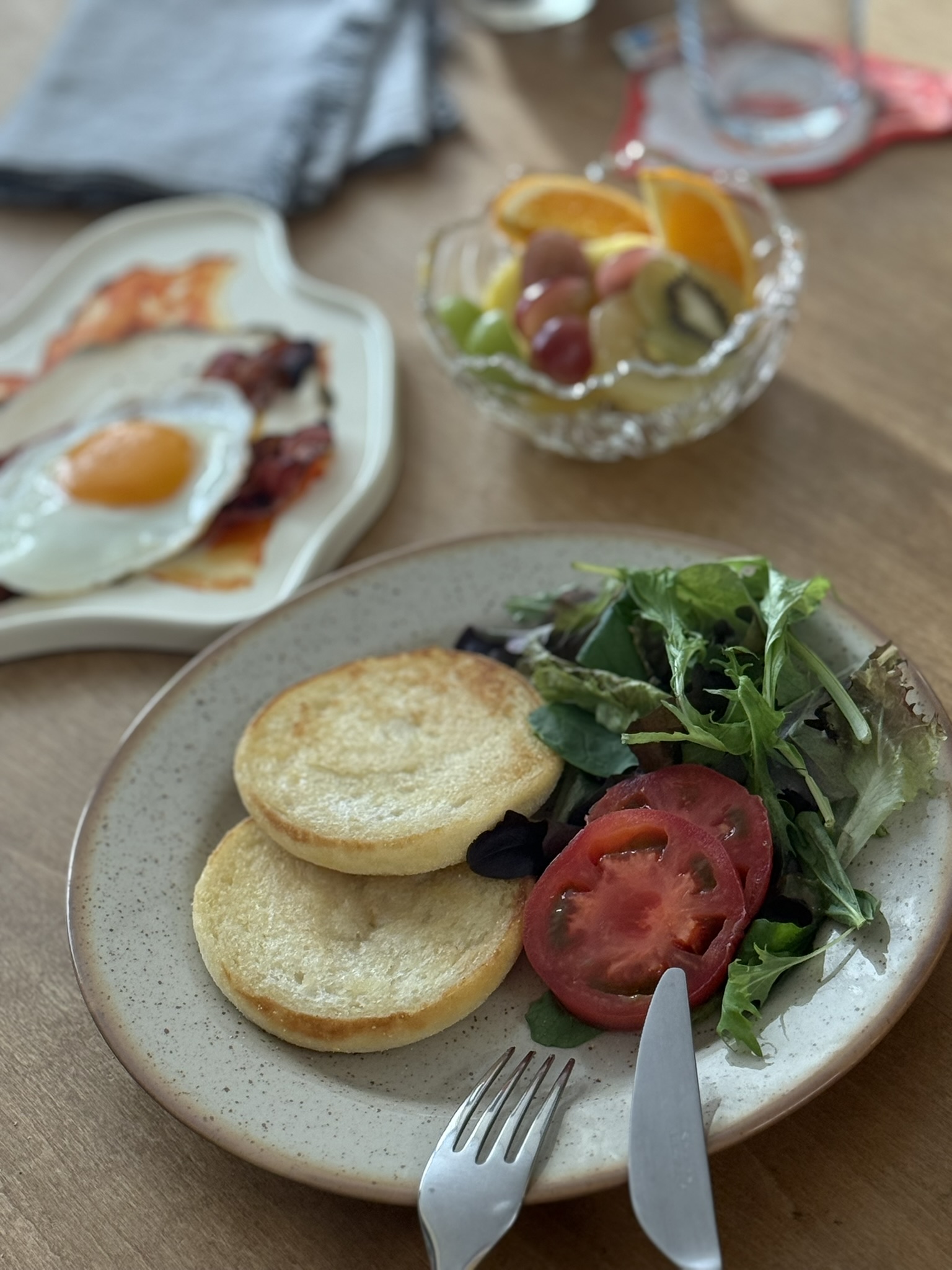 目玉焼き・マフィン・サラダ