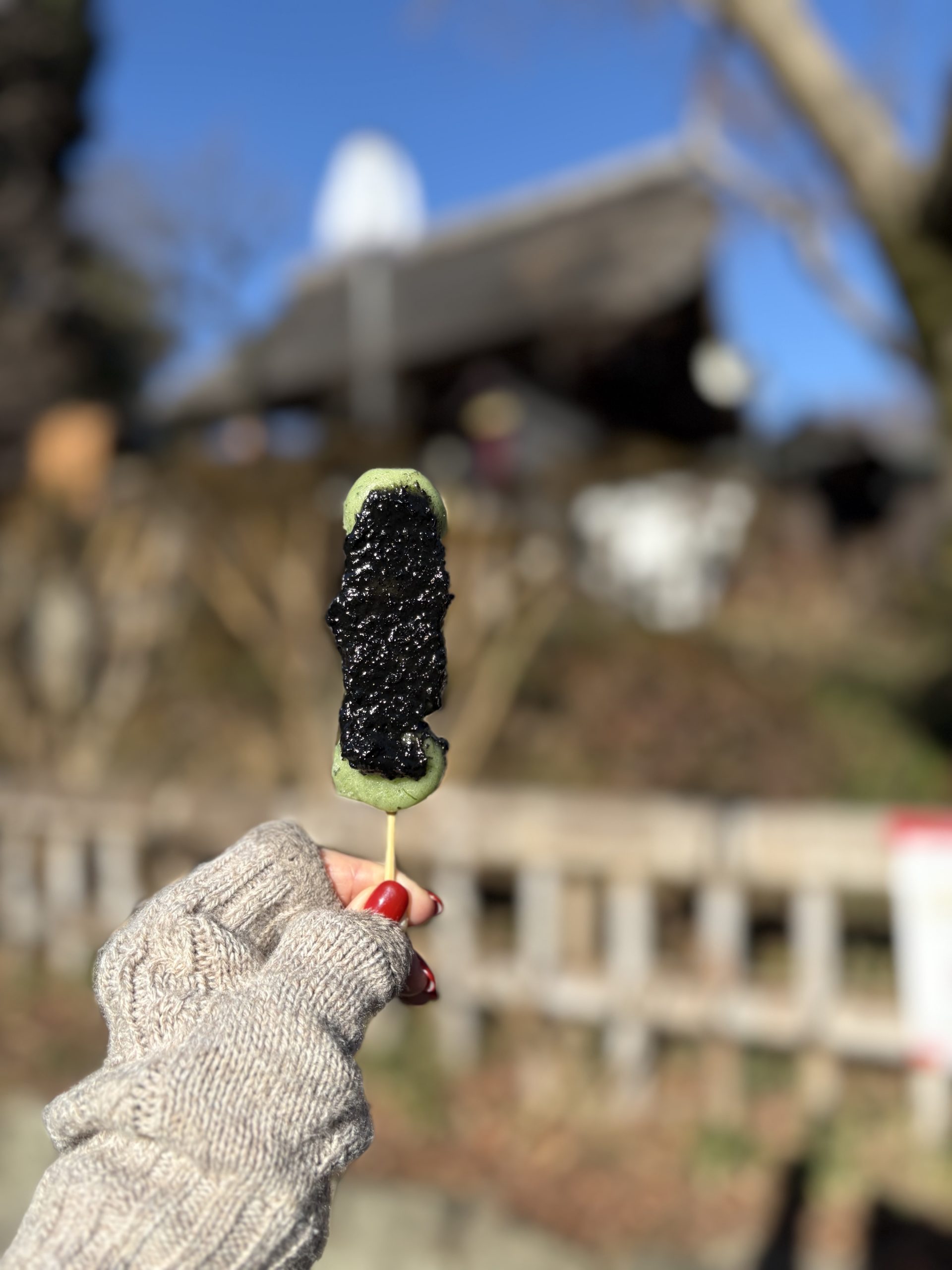 人が多いお寺周辺でさくっとお団子を食べて(冬に外で食べるホカホカなお団子ほんと好き🍡🧡)
