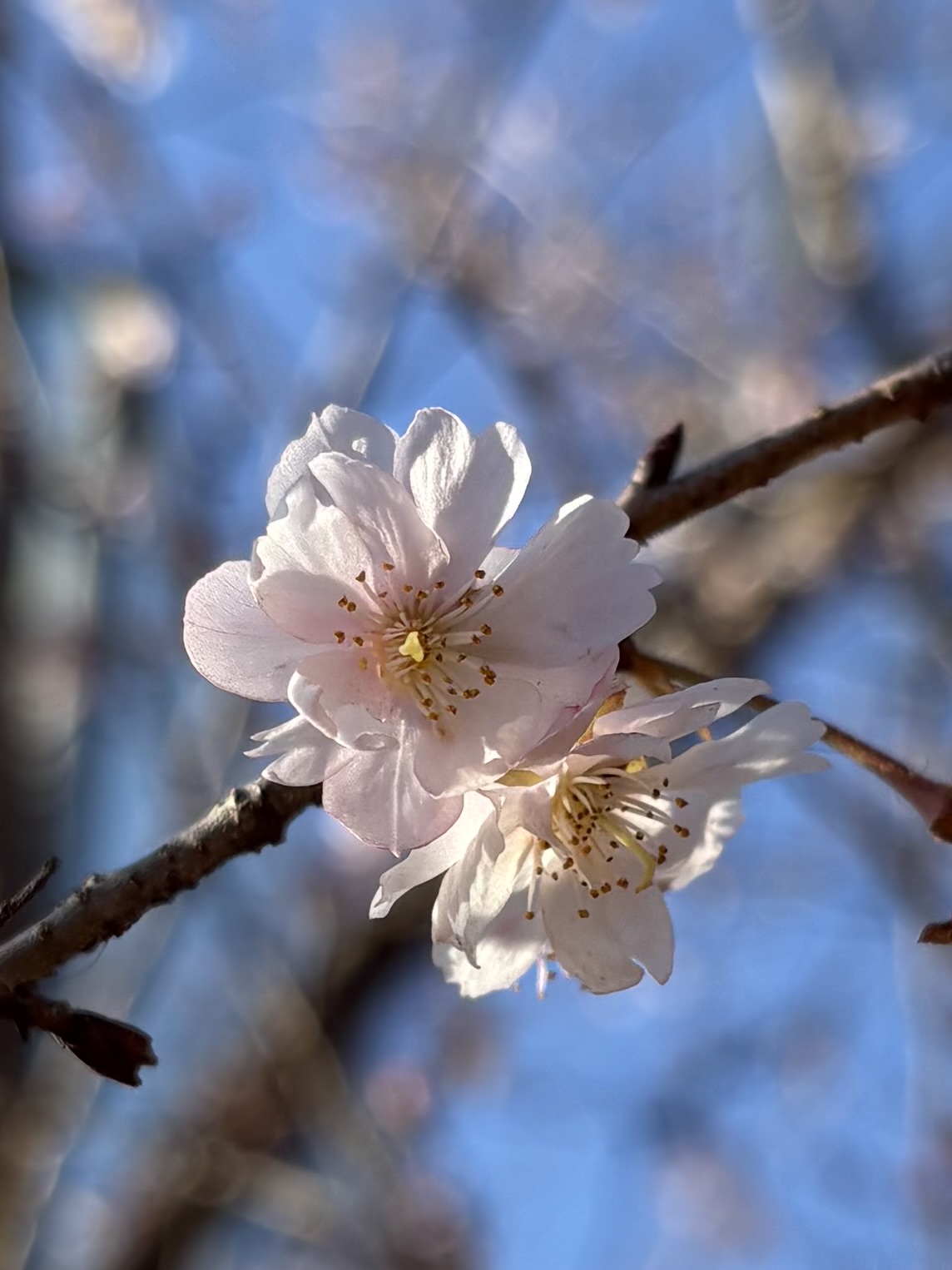 この時期から咲いてる早咲きの桜?みつけたり、きれいな広い空見上げたり