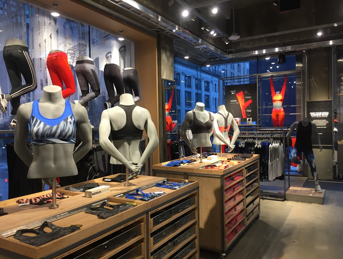 ナイキの基幹店、至る所に動きのあるマネキンDP。