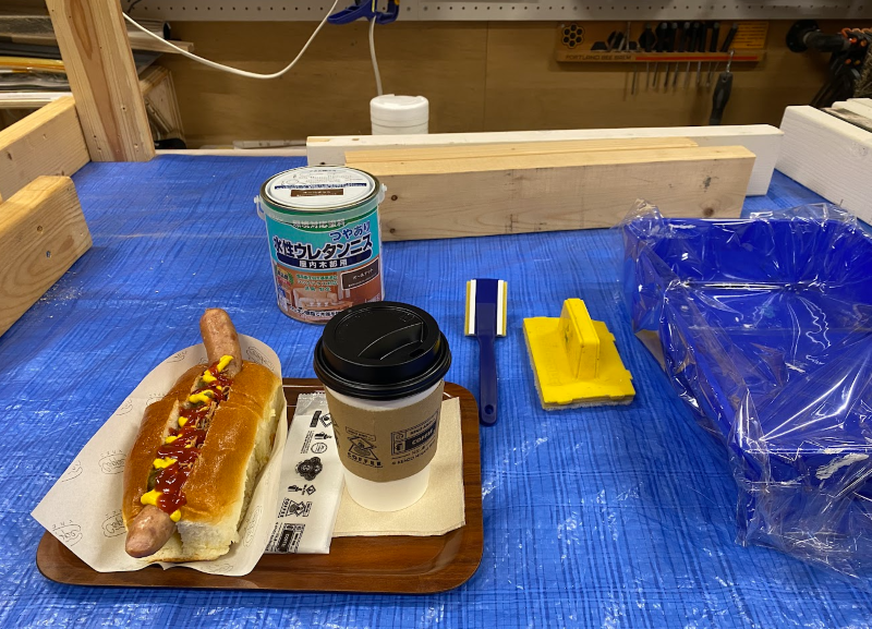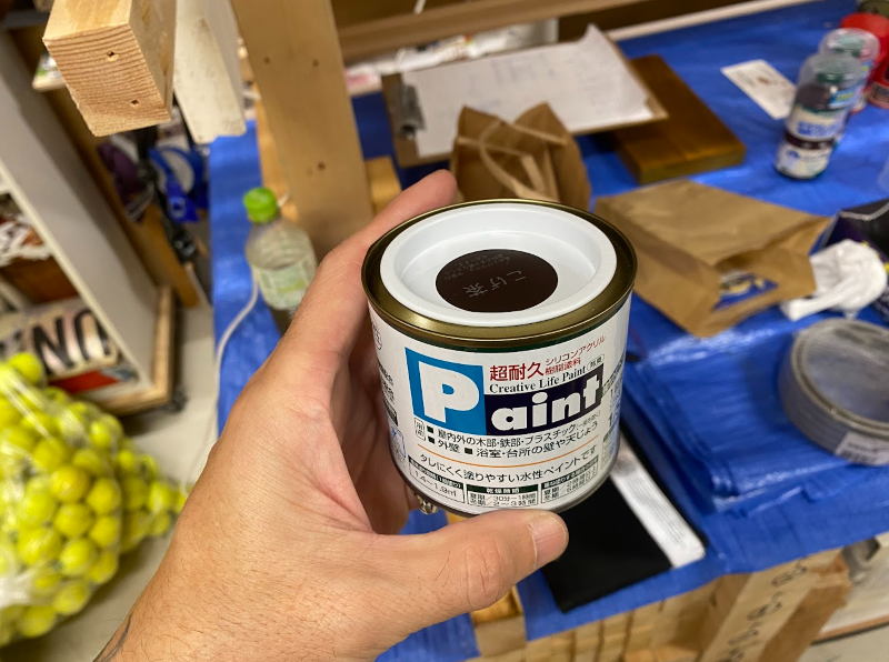 狭い場所で塗装するときは、こんな感じで木枠組んで
