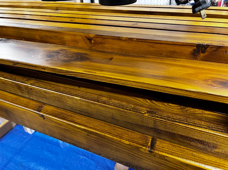 木目や節だけ黒っぽくなって、全体が濃くならない。