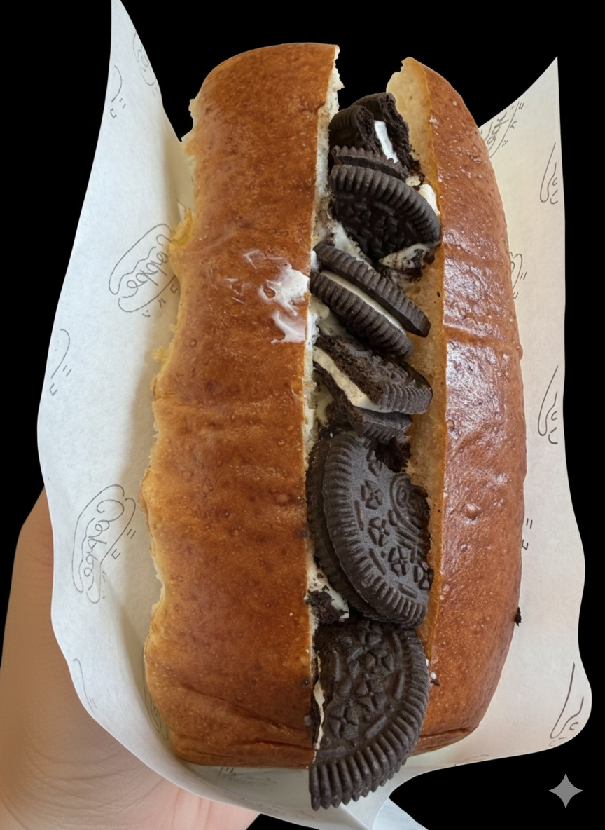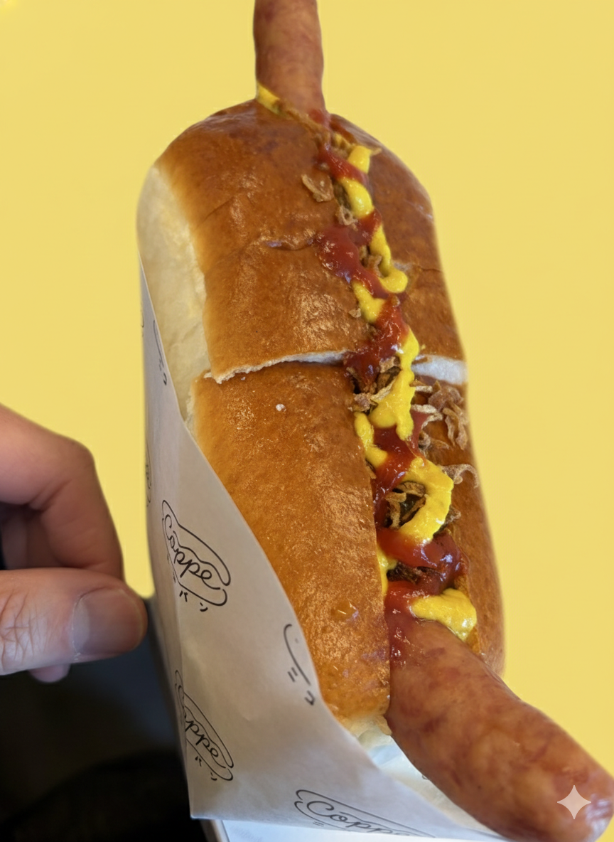 →**【惣菜パン部門:個人的No.1】** とにかくソーセージのボリュームが凄まじく、パンからはみ出すサイズ感。ジューシーな肉の旨みがダイレクトに楽しめます。