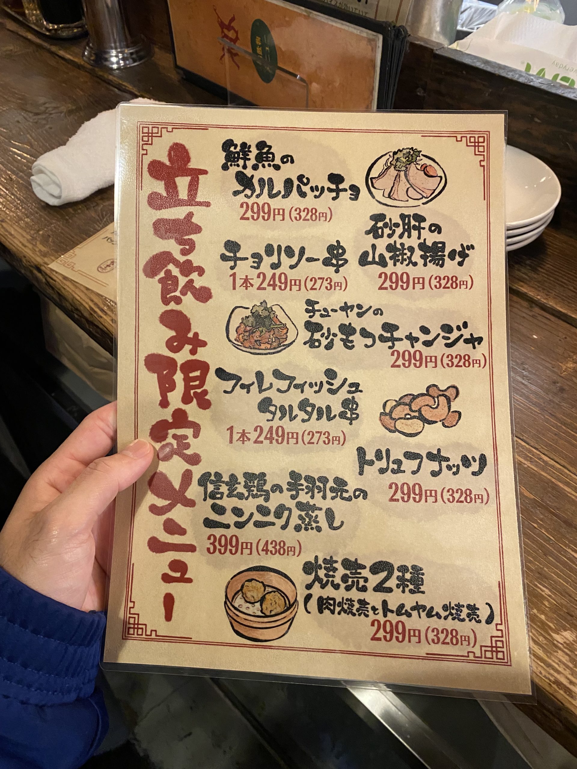 ・手頃な立ち飲み席限定メニューあり