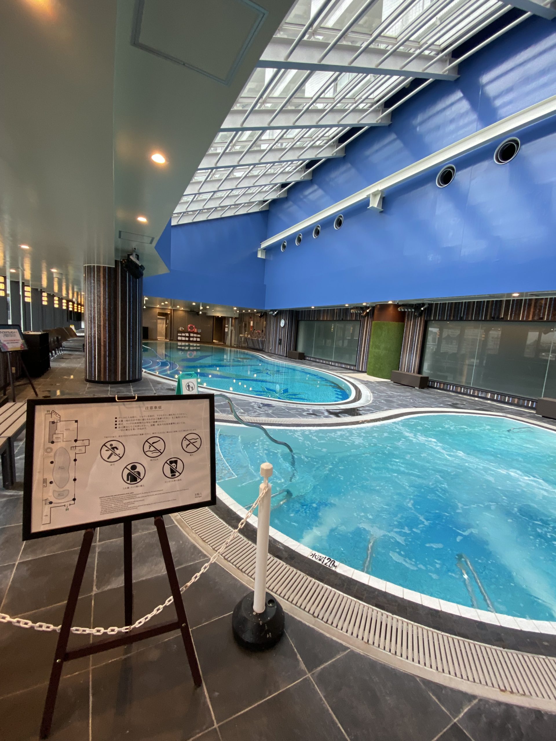 広々としたプール。奥にジャグジーやサウナもあります。水風呂代わりにプールに浸かるのが最高です。夏季期間以外はベイクラブフロアの料金内で利用出来ました。