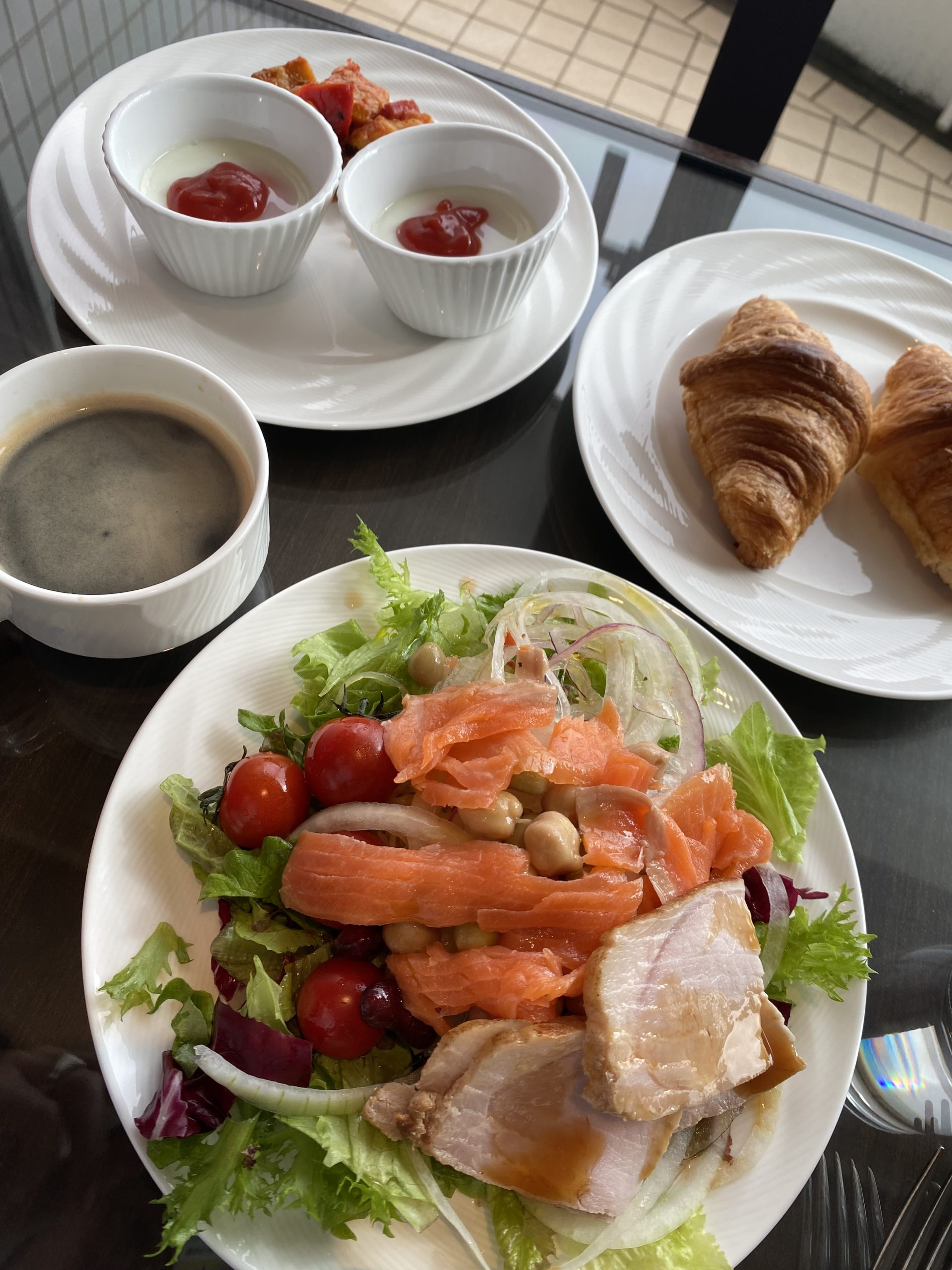 朝食は洋食。そごう横浜のデパ地下にも出店しているメゾンカイザーのパンが食べられます。クロワッサンが美味です。