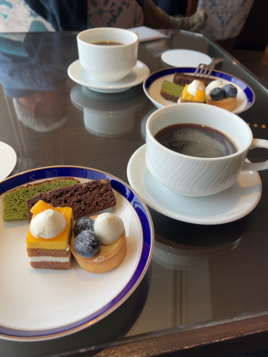 ティータイム。ガトーショコラなどを楽しみながら景色を見てのんびり出来ます。瓶のコーラやジンジャーエールなどもありました。チェックインは15時からですが、ラウンジは14時から利用出来ました。