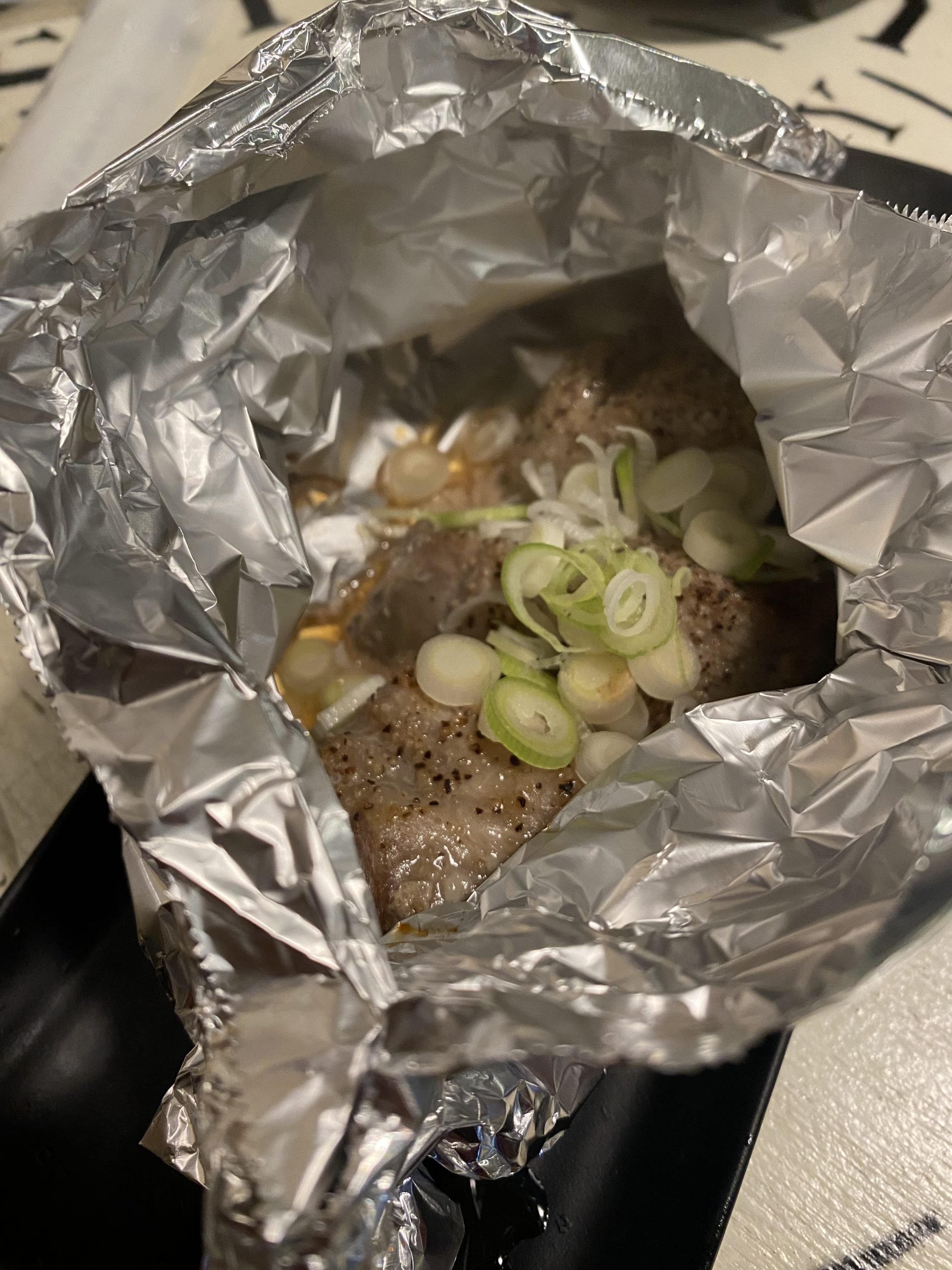 →胡椒が効いたホイル焼きです。味が濃くてチビチビいけるので、ツマミに最高です。個人的に一番のヒットでした!