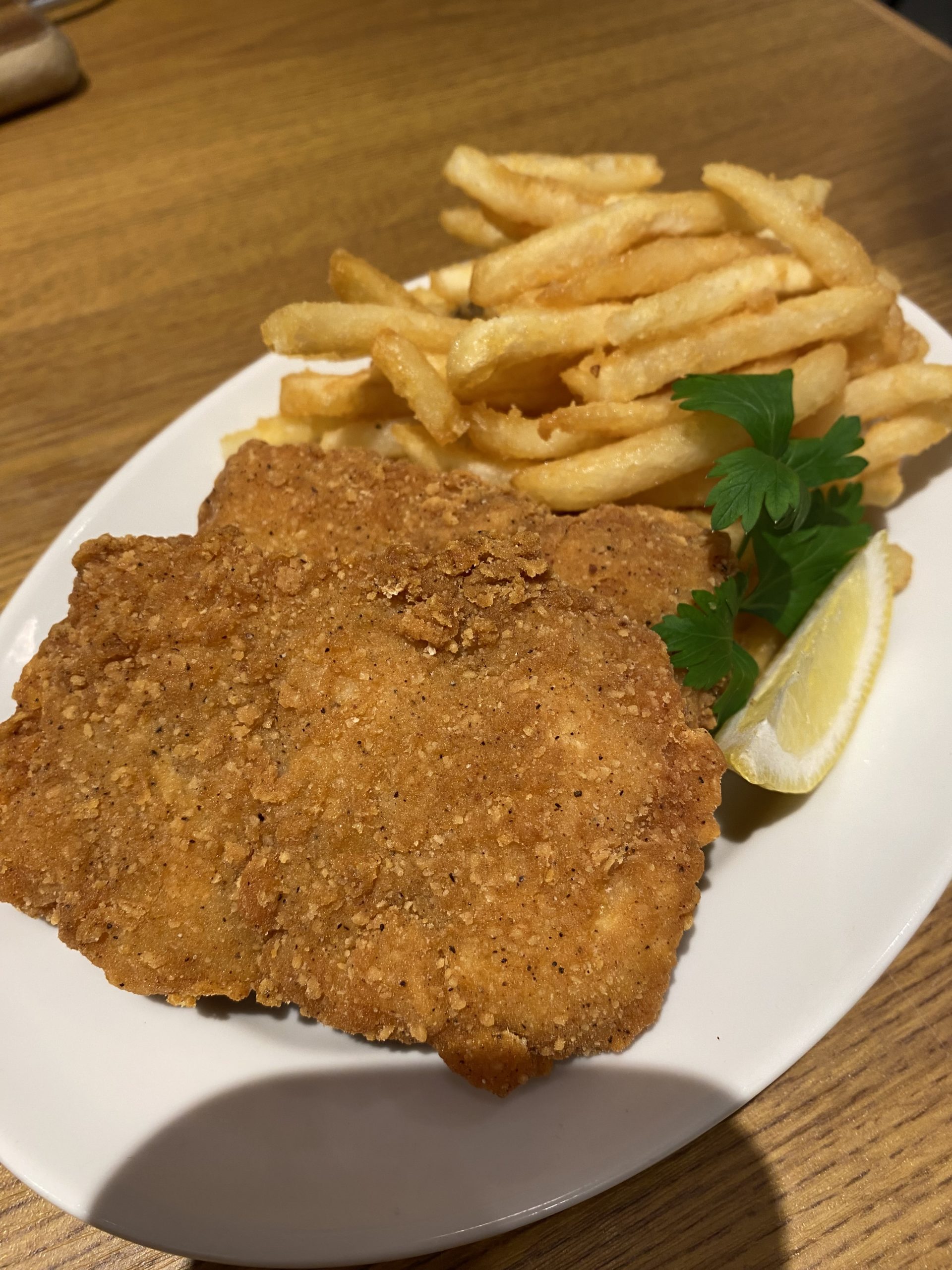 →チキンが結構大きめで食べ応えがあります。ポテトフライも量があり、2人だとこれだけでツマミとしてはある程度十分かもしれません。大満足。