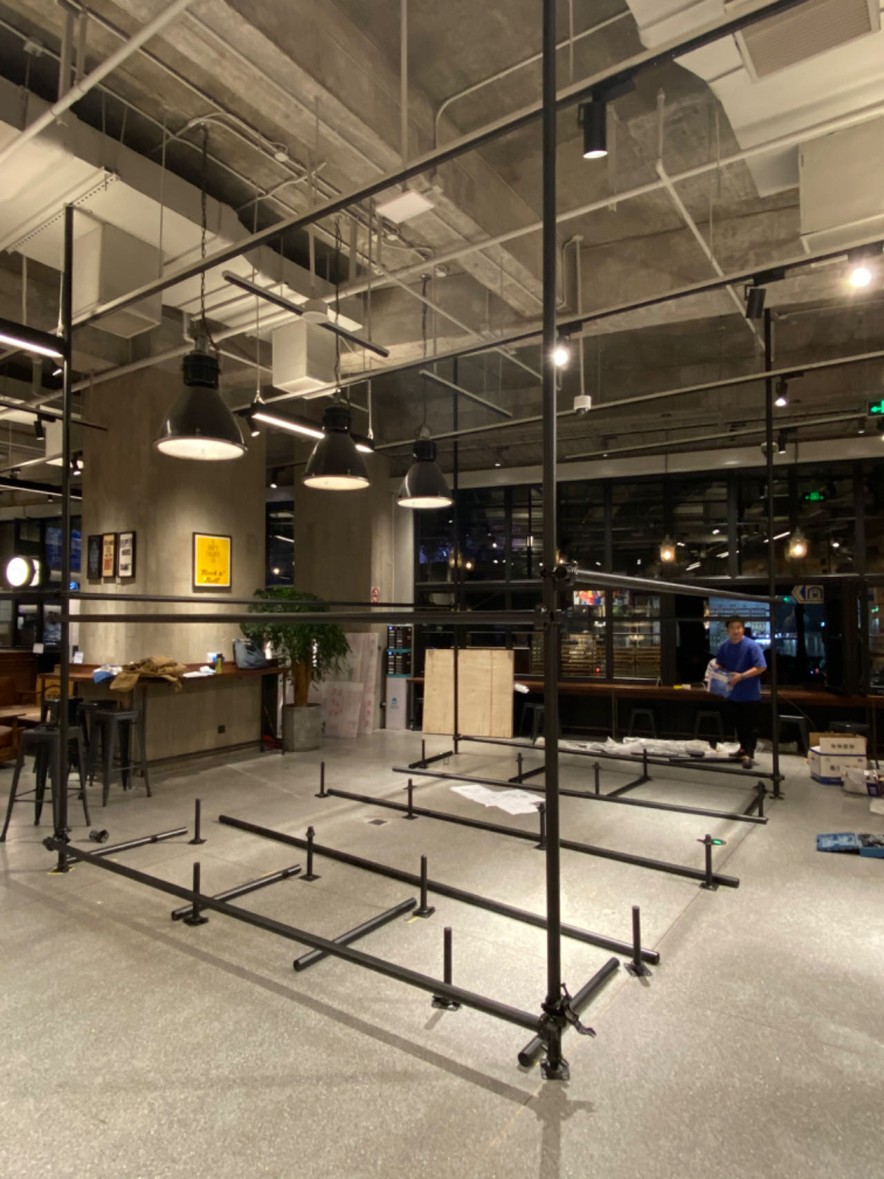 ちなみにこの企画に向けた売り場は、黒をベースカラーとしてお店の中央に単管パイプで大きなやぐらを組みました。