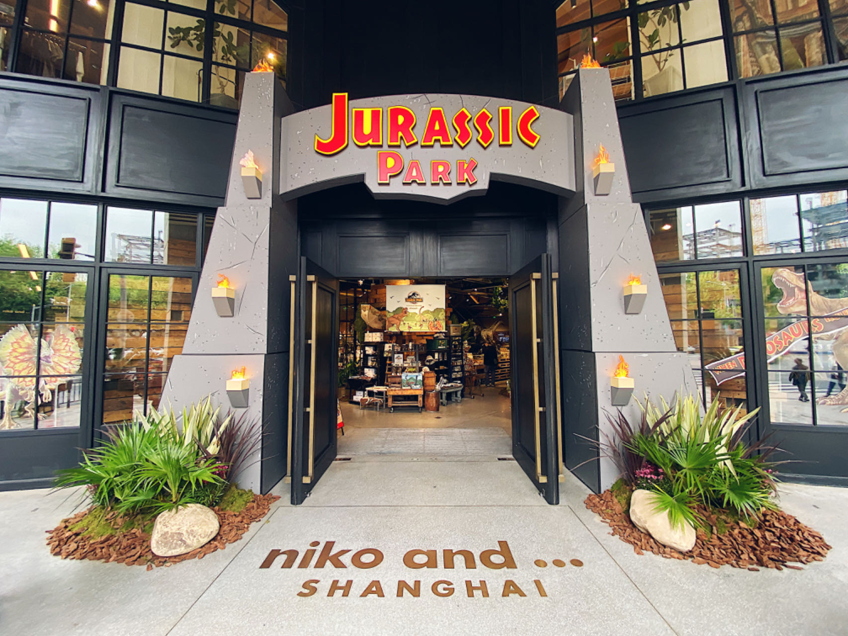 ニコアンドでコラボしていたジュラシックパークのディスプレイ。圧倒的な印象を付けるためにユニバーサルから恐竜も借りてお店に展示しました。今までやったことの無かったお店の外にもまるでユニバーサルスタジオのようにゲートを付けるという迫力あるギミックも。このアイデアを考えてくれたのは現地スタッフでした。やはり、大陸育ちだけにスケールが違います。少し迷いましたが、賛同してこのようなお店が出来上がりました。