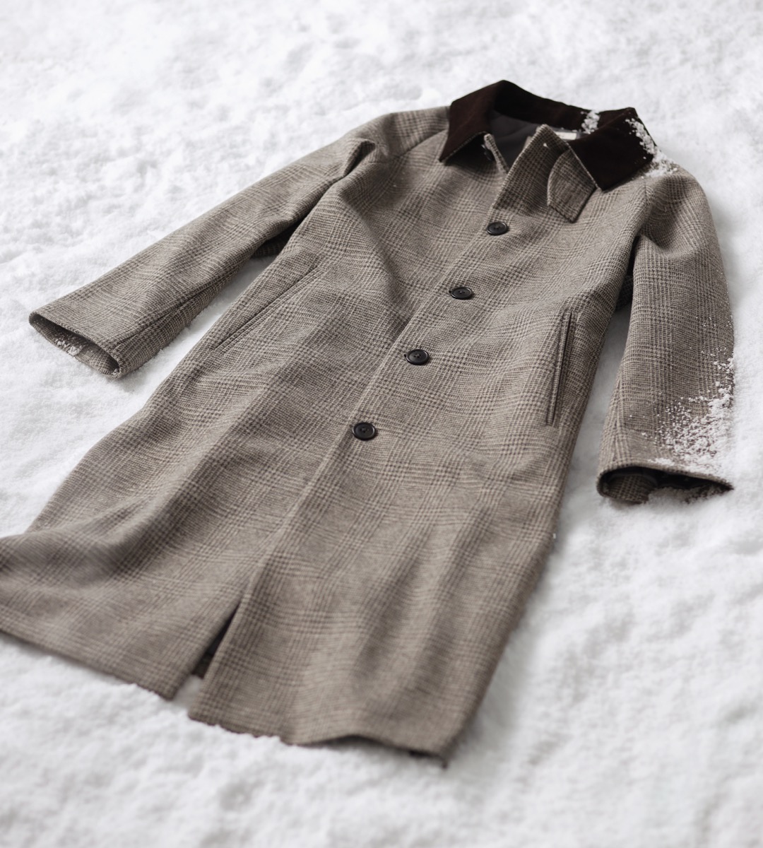 去年人気を博したロングコートが装い新たに登場。今年はライトベージュ、ネイビーに加え、襟の切り替えがポイントのグレーチェック、ブラウンチェックがラインナップ。素材には引き続きウールライクな質感ながら軽くて暖かい「ウーリーテック」を使用しているので、着心地は見た目から想像できないくらい軽快。カジュアルからキレイめまで幅広いスタイルにマッチ。