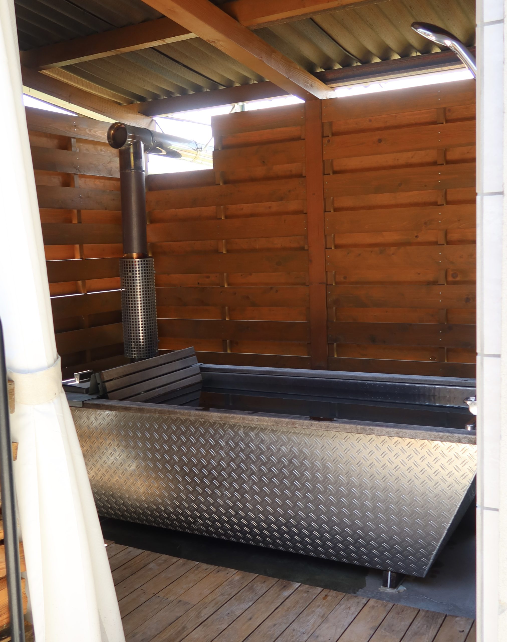 サウナは外にあり、自分たちで薪を入れれて、セルフロウリュウもできるフィンランド式サウナ🪵🧖♀️