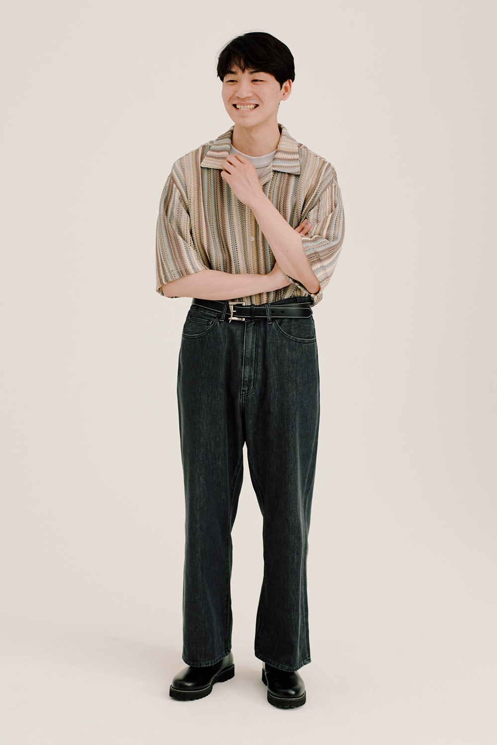 すこし退屈になりがちな春夏のコーデを程よく彩ってくれそうなボトムです。着合わせ自体はシンプルですが、Tシャツのサイドステッチなど細かいディテールを合わせて遊んでいます。