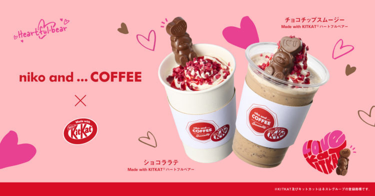 niko and ... COFFEEと「キットカット ハートフルベアー」が 初のコラボレーション!ハートバルーンを持つ”クマ型キットカット”が 今年のバレンタインを彩るユニークなドリンクとして登場