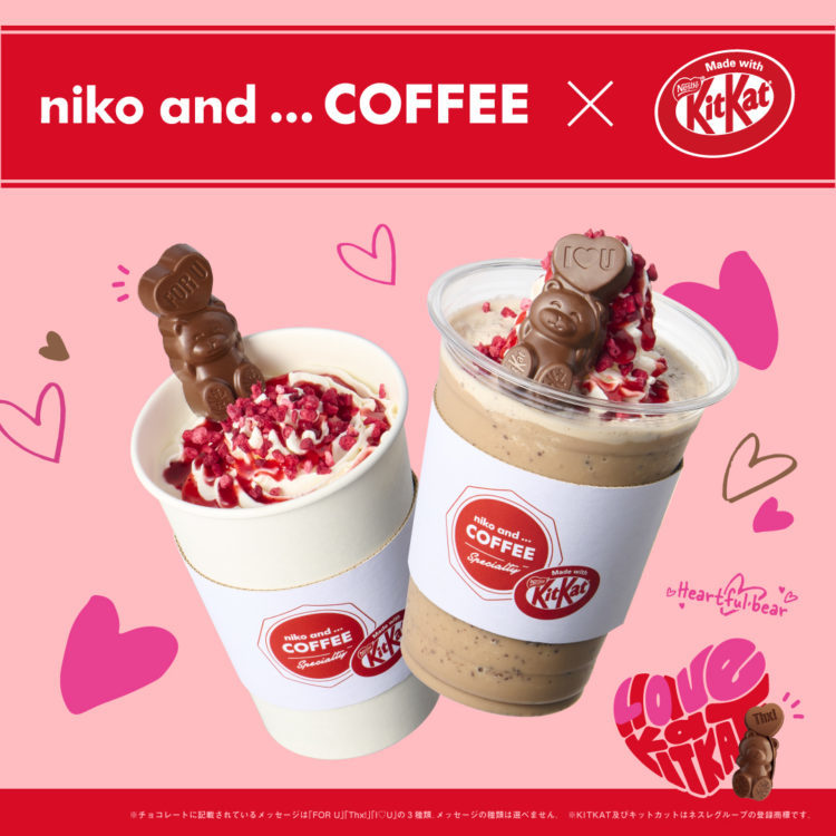 niko and ... COFFEEと「キットカット ハートフルベアー」が 初のコラボレーション!ハートバルーンを持つ”クマ型キットカット”が 今年のバレンタインを彩るユニークなドリンクとして登場