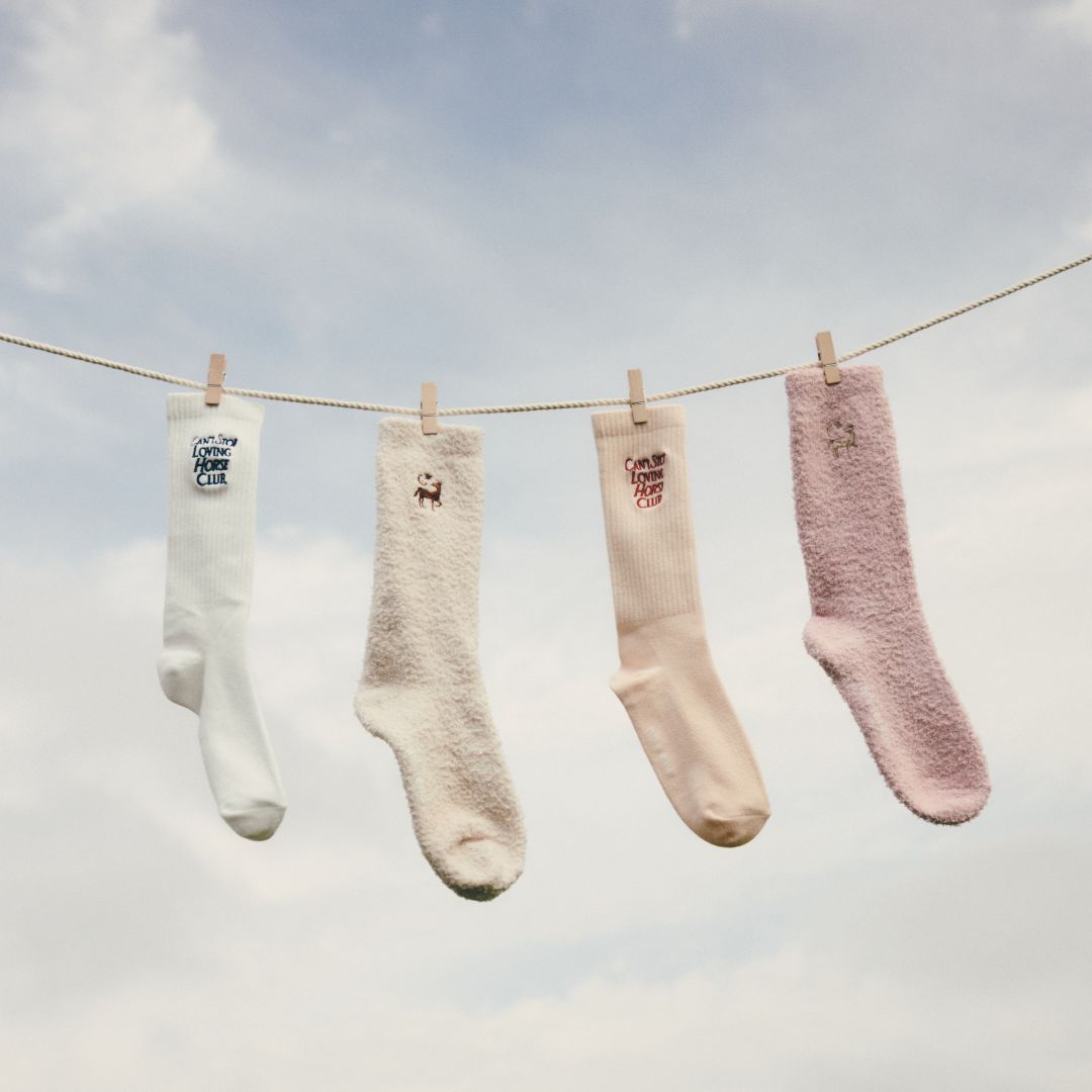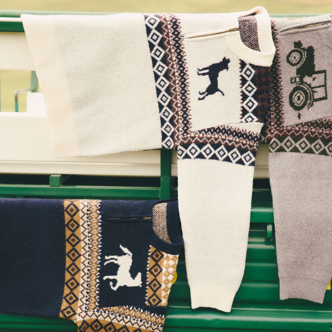本コラボレーションでは、ウィメンズアパレルと服飾雑貨をラインアップしており、実際に「NASU FARM VILLAGE」で撮影された写真を使用したフォトスウェットや<Can’t Stop Horse Club,>という人気のロゴをあしらった中綿入りジャケット、象徴的なトラクターや動物をジャガード編みで表現したニットプルオーバーと、アパレルアイテムに連動したデザインのニット帽など「NASU FARM VILLAGE」の世界観を表現した特別なコレクションに仕上がりました。