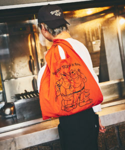 “ユニオンバッグ”をモチーフに創業年や所在地を載せ、歴史を感じさせるデザイン。熱狂的なユニオンフリークが着るとしたら?をテーマに、“Union Shopping Club”という架空の団体をイメージしました。