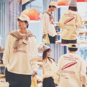 ブランドのキーカラーの赤をロゴにしたシンプルなプリントのデザイン。長年愛され続けるフランスパンのバゲットを、遊び心があるグラフィックで表現しました。いずれも「POMPADOUR Red is mark of Excellence = ポンパドウルレッドは上質へのこだわりを象徴する赤」をテーマに、それぞれのアイテムを作成しました。