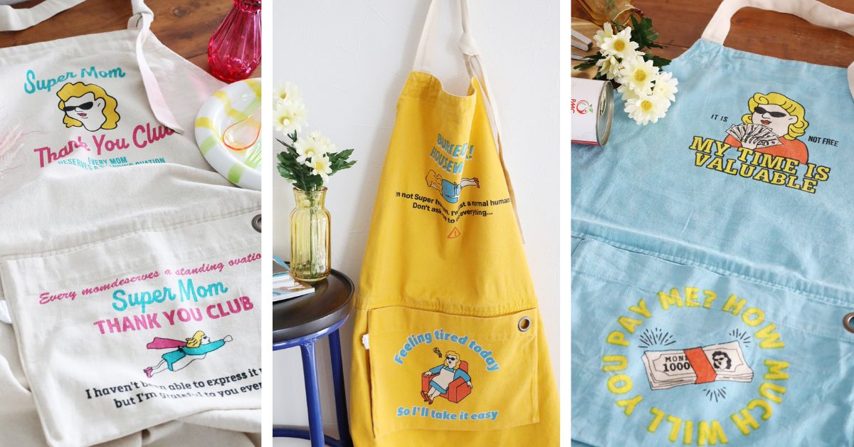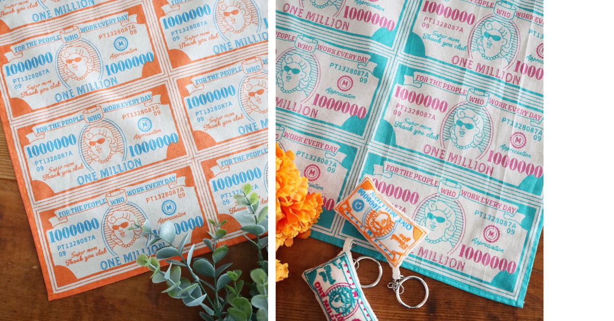 アイテムは、Super Momというオリジナルキャラクターを用いた、くすっと笑えるエプロンやポーチ、トートなどをラインアップ。また、ハンカチはいつも休みなく働くお母さんたちのお給料(!?)風の札束をデザインにしたユニークさがあふれるアイテムになっています。さらに、ビーズフラワーやデザインミラーなど、さまざまなシーンに寄り添うギフトを用意しました。特別にギフト探しをする人だけではなく、日常の買い物の中で、ふと「大切な人に贈りたい」と思えるようなアイテムとスタイルを提案します。
