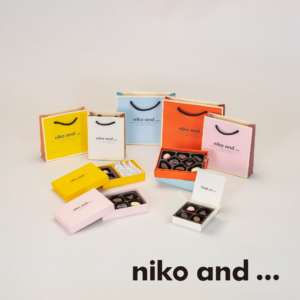 さらに一部アイテムにはniko and ...のロゴグラフィックの包装をしたチョコレートが入っており、男女問わずもらって嬉しい特別なギフトBOXです。