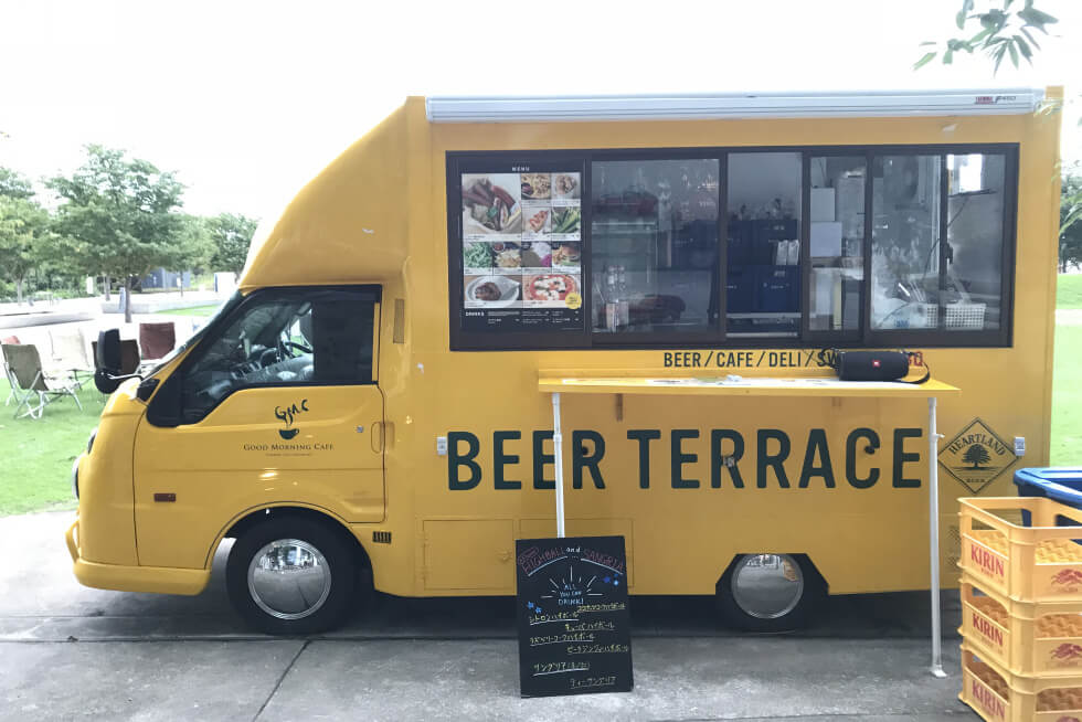 ビールはハートランド、ハイネケン、コロナ、ブルームーン、ギネス。その他、ワイン、サングリア、ハイボール、レモンサワー、カクテル各種、ソフトドリンクもございます。おつまみはフレンチフライ、スパイシーチキン、枝豆、ソーセージ盛り合わせなど。その他、ピザ各種、ハンバーガーセットなどございます。黄色いキッチンカーでお待ちしております。気軽にどうぞ。